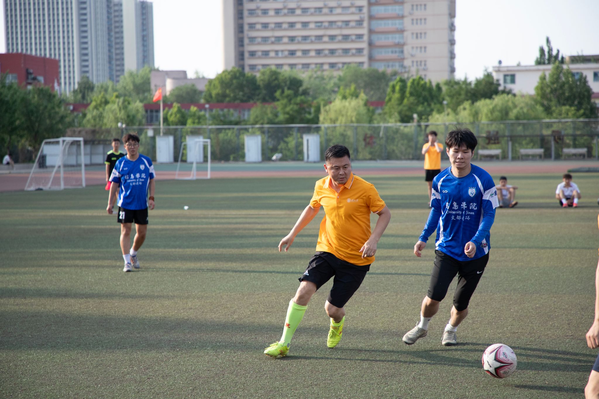 为丰富校园文化生活,激发毕业生爱校荣校情怀,表达对毕业生的美好祝愿,为毕业生营造和谐温馨、惜别感恩的离校氛围,6月10日下午,万象城娱乐awc线路在南苑操场举办了2025届“毕业杯”师生友谊足球赛。教师代表队与2025届毕业生代表队齐聚赛场,用汗水诠释青春,用拼搏致敬师生情。
