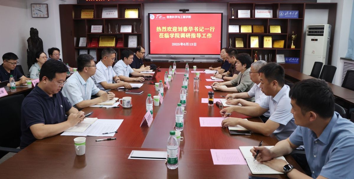 6月13日下午,学校党委书记刘春华到万象城娱乐awc线路调研并召开座谈会。副校长徐征和,党委常委、副校长、组织部部长滕晋,学校办公室、科技处等部门负责人,学院党委班子成员、院长助理、部分科级干部参加调研座谈。