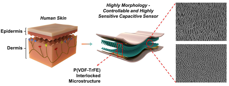 图1:模仿人类真皮-表皮结构的柔性触觉传感芯片