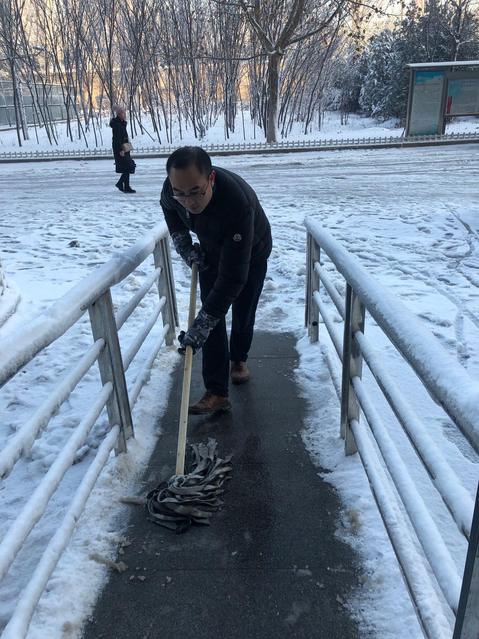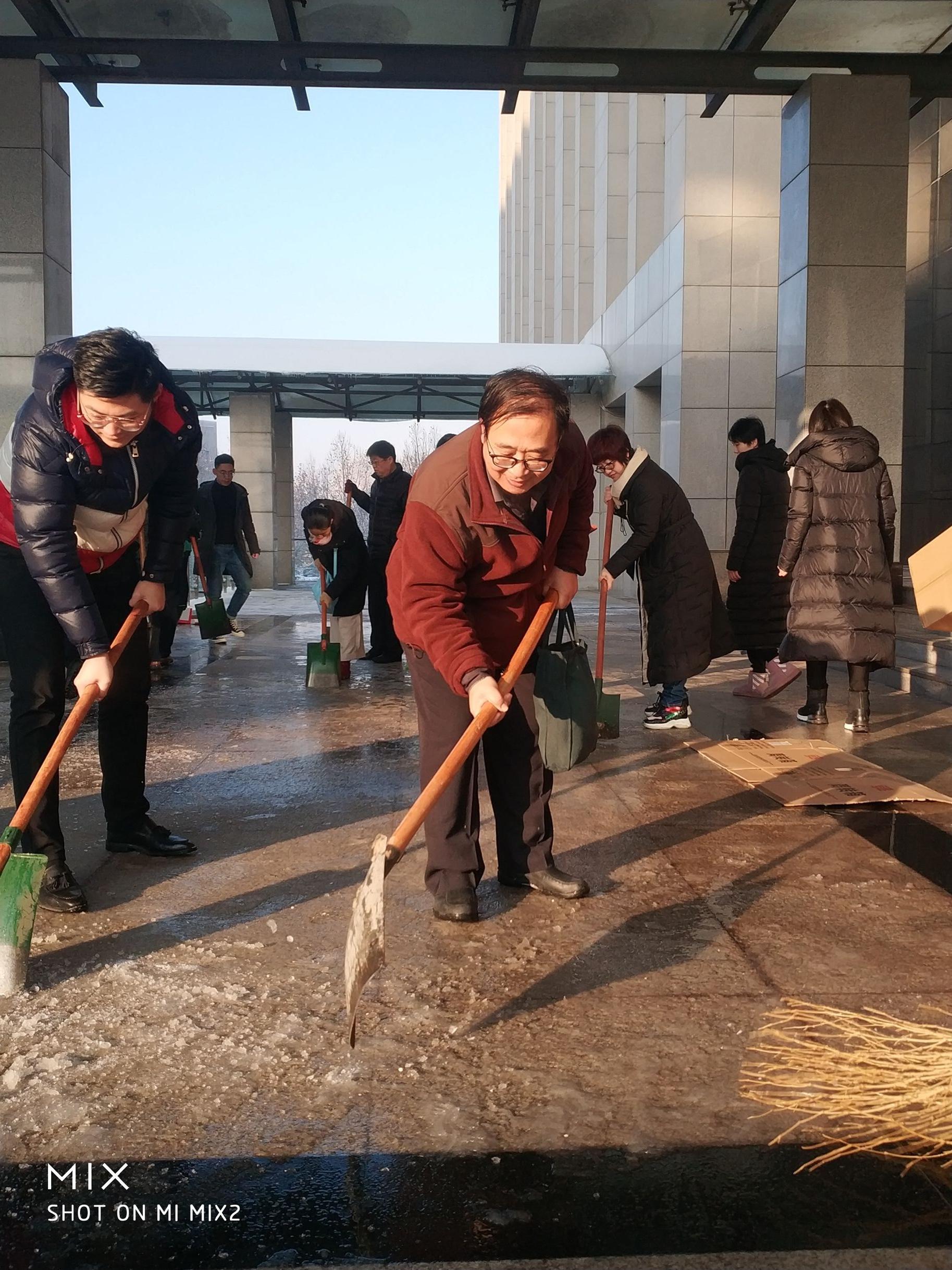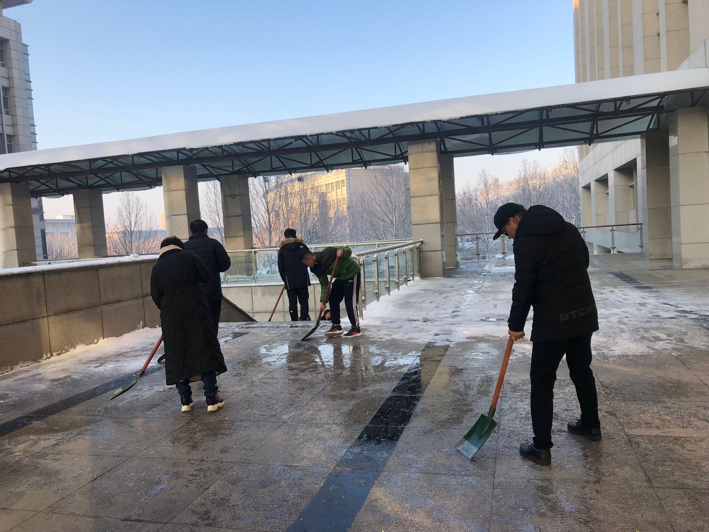为确保师生安全,1月8日早上,万象城领导班子带领学院部分教职工以及学生志愿者积极行动起来,开展扫雪除冰活动,清除学院主干道和周围积雪,方便师生出行。大家手拿铁锨、扫帚等工具,从教学楼前开始,依次沿楼前东西通道、教学楼北侧逐一清理积雪。扫雪现场,老师们齐心协力,配合默契,干得热火朝天。虽然室外温度很低,但大家劳动的热情和团结协作的力量让这个冬日变得格外温暖。经过大家的努力,学院周围道路上的积雪基本清扫干净,为全院师生开辟了一条洋溢着暖暖温情的方便之路,保证了全院师生的出行安全,也呈现出来自学院的温暖和人文关怀。