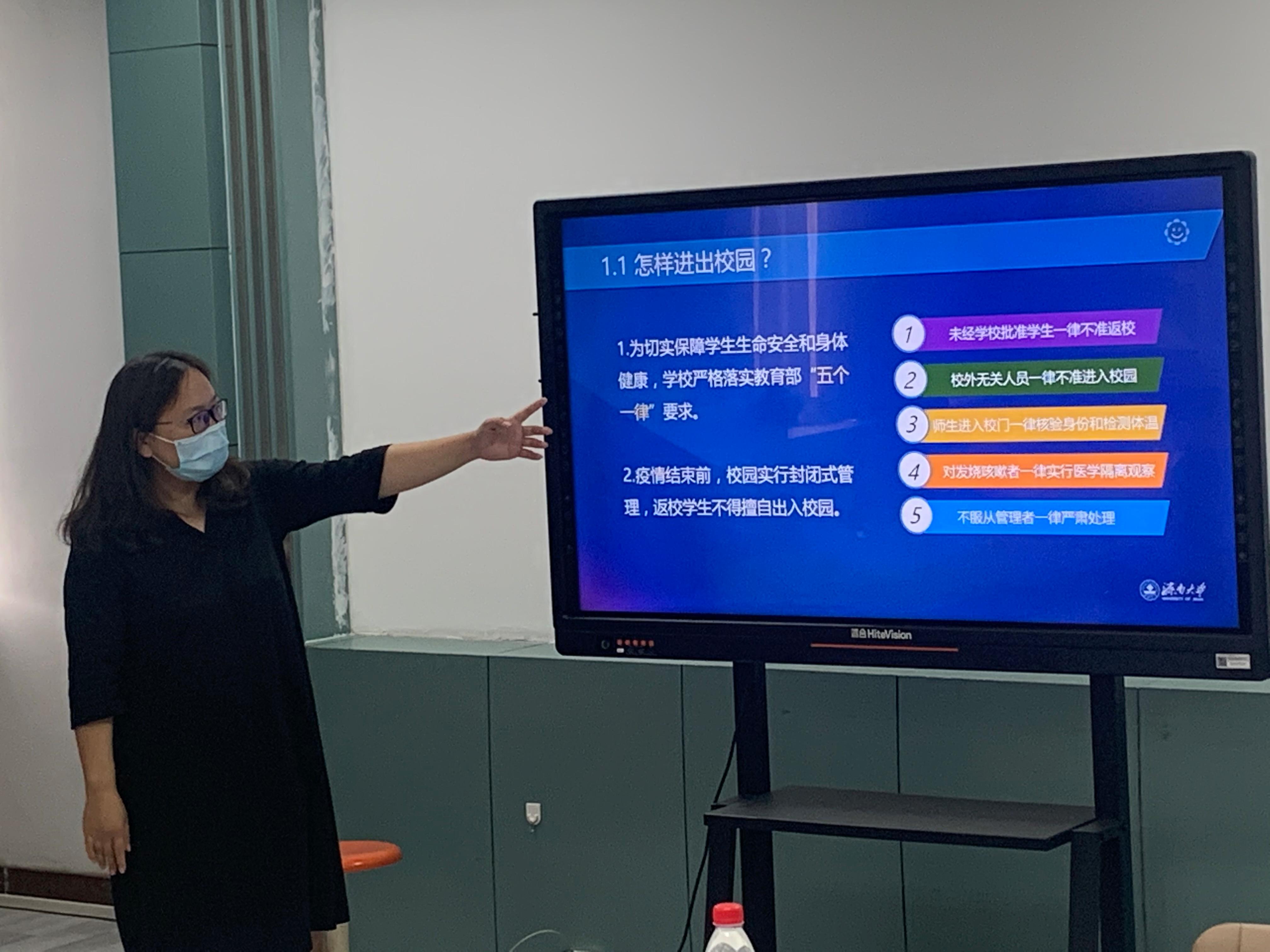 为进一步强化返校复学疫情防控工作,切实增强返校学生大局意识、责任意识和底线思维。5月29日,万象城娱乐awc线路组织开展“开学第一课”教育活动。全体返校研究生、本科生志愿者分批次参加。