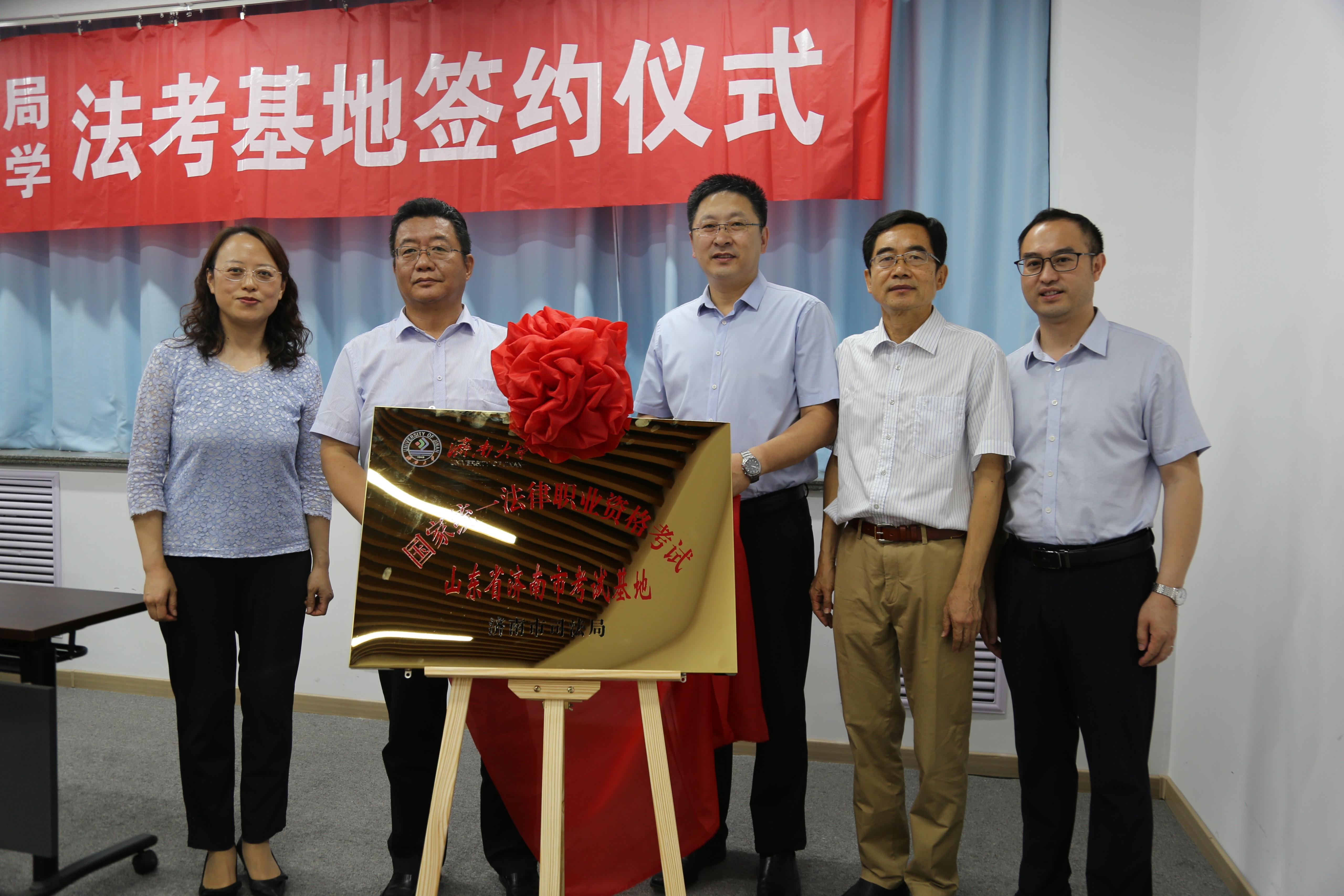 签署合作协议之后,济南市司法局副局长王春平同志和万象城娱乐awc线路合作发展处处长卢旺同志为“济南法考基地”进行了揭牌。