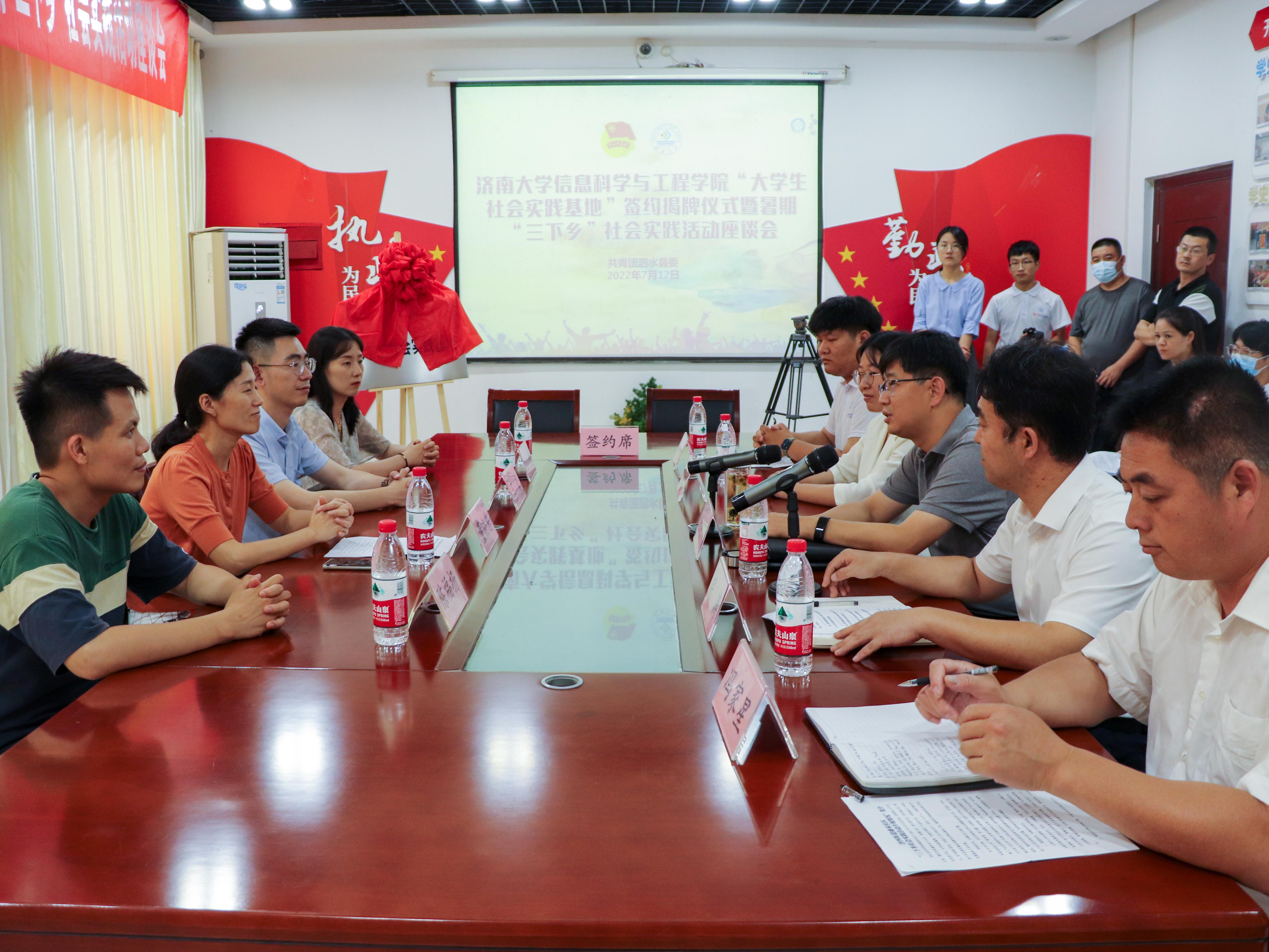 7月12日下午,万象城娱乐awc线路与共青团泗水县委、泗水县济河街道盛泉社区举行“大学生社会实践基地”签约揭牌仪式暨暑期“三下乡”社会实践活动座谈会,泗水县委副书记张宇飞,共青团泗水县委书记王晓,济河街道盛泉社区党委书记冯家星,万象城娱乐awc线路党委副书记、副院长董晓慧,团委书记王豪出席仪式,共青团泗水县委、泗水县济河街道盛泉社区相关工作人员,学院学生工作人员以及学院暑期“三下乡”社会实践团队成员等参加活动。仪式由泗水县济河街道党工委书记张涛主持。