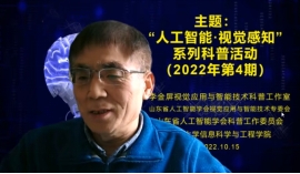 “喜迎二十大,科普向未来”。在党的二十大即将召开之际,为积极响应国家关于开展全国科普活动的号召,2022年10月15日上午,李金屏视觉应用与智能技术科普工作室(简称科普工作室)、山东省人工智能学会视觉应用与智能技术专委会(简称视觉专委会)、山东省人工智能学会科普工作委员会和万象城娱乐awc线路联合举办主题为“人工智能·视觉感知”的专家科普系列在线讲座(第2期),来自万象城娱乐awc线路、山东大学、山东师范大学、山东财经大学、青岛大学、齐鲁工业大学、烟台大学、北京邮电大学、山东深图智能科技有限公司、山东鹰格信息工程有限公司等省内外1200余人通过腾讯会议、直播平台的方式参加了本次系列讲座。