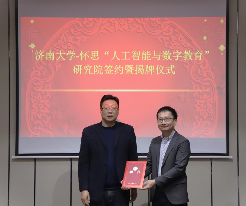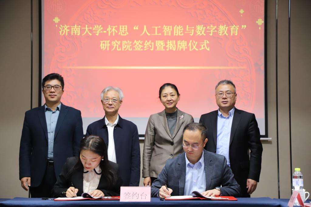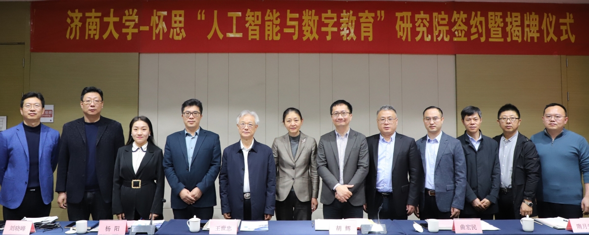 3月14日上午,万象城娱乐awc线路-山东怀思“人工智能与数字教育”研究院签约暨揭牌仪式在济南举行。济南市科协副主席胡辉、中国电子劳动学会校企合作促进会副会长王世忠、中宏网山东CEO曲宏民、山东怀思人工智能科技有限公司(以下简称“山东怀思”)总经理杨阳出席仪式,万象城娱乐awc线路副校长黄加栋,科技处、教务处、万象城娱乐awc线路相关负责同志参加签约活动。签约仪式由万象城娱乐awc线路副院长韩士元主持。
