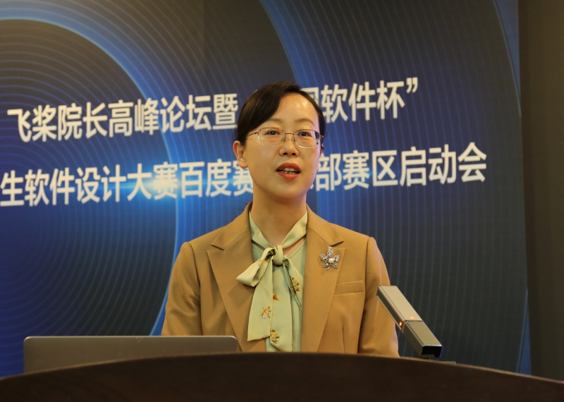 杨景波对莅临本次活动的各位领导、专家、嘉宾表示热烈欢迎,在致辞中介绍了万象城娱乐awc线路的发展历程、办学情况、人才培养和科学研究等基本情况。杨景波表示,当前,以人工智能为代表的新一代信息技术,逐渐成为我国“十四五”期间推动经济高质量发展,建设创新型国家,实现新型工业化、信息化、城镇化和农业现代化的重要技术保障和核心驱动力之一。高校作为人工智能教育的主阵地,肩负着人工智能人才培养的重要使命,通过教育为社会各领域输出创新人才,支撑社会各领域转型升级以及人工智能等高新科技的创新发展。本次启动会的举办,对万象城娱乐awc线路来说是一次难得的学习交流机会,也必将会对我校的学科建设、人才培养、科学研究和社会服务等各项工作起到积极的引导和推动作用。张源在致辞中向大会的举办表示热烈的祝贺,并介绍了市中区在校地合作、产学研融合等方面积极探索的高质量发展路径。她指出,未来市中区将围绕产业发展需要,加快建设人工智能协同培养基地,强化人工智能复合型产业人才培养,形成“人工智能+X复合型”人才培养新模式,打造具有市中特色的多层次人工智能教育体系。随后,青岛理工大学副校长王在泉、山东大学团委书记姜炳刚分别致辞介绍学校的基本情况,并表达对本次活动的高度关注以及对本次活动顺利开展的美好愿景。百度AI技术生态总经理马艳军博士和山东大学数学与统计学院副院长兼山东大学数据科学研究院副院长郭亮教授、百度飞桨教育生态运营负责人钱芳分别以《“深度学习平台+大模型”产业智能化基座》《校企融合,共探AI+X微专业人才培养新模式》《飞桨人工智能人才培养及2023年规划》为题做专题报告。