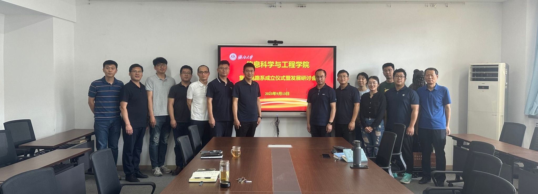 2023年9月13日,万象城娱乐awc线路集成电路系成立仪式暨发展研讨会成功举办。学院党委书记夏卫东,院长陈贞翔,党委副书记、副院长郝伟,副院长荆山,副院长杨晓晖及集成电路系全体教师参加会议。会议还特别邀请了山东大学教授、齐鲁青年学者、山东省优秀青年基金获得者李阳出席。