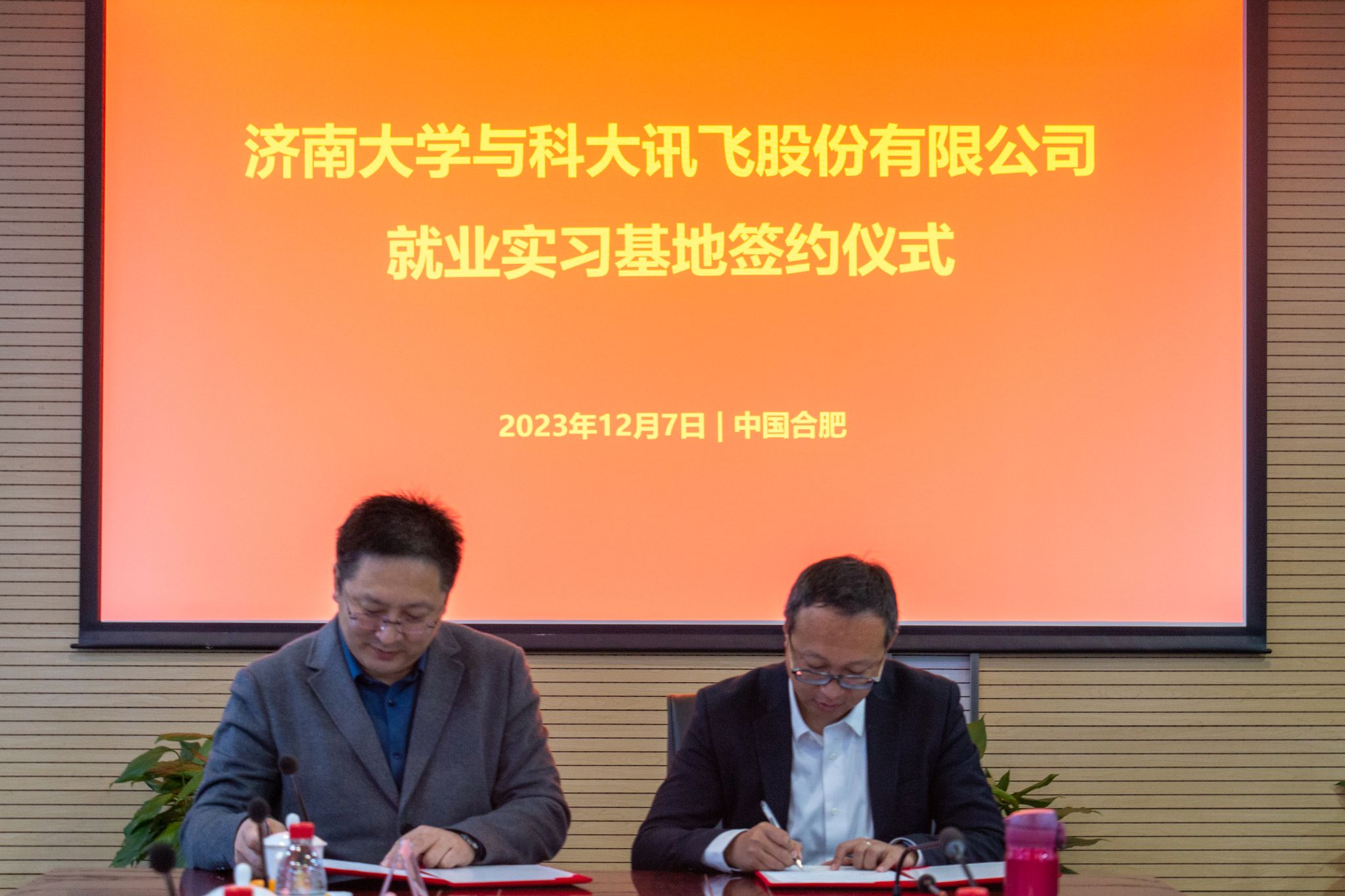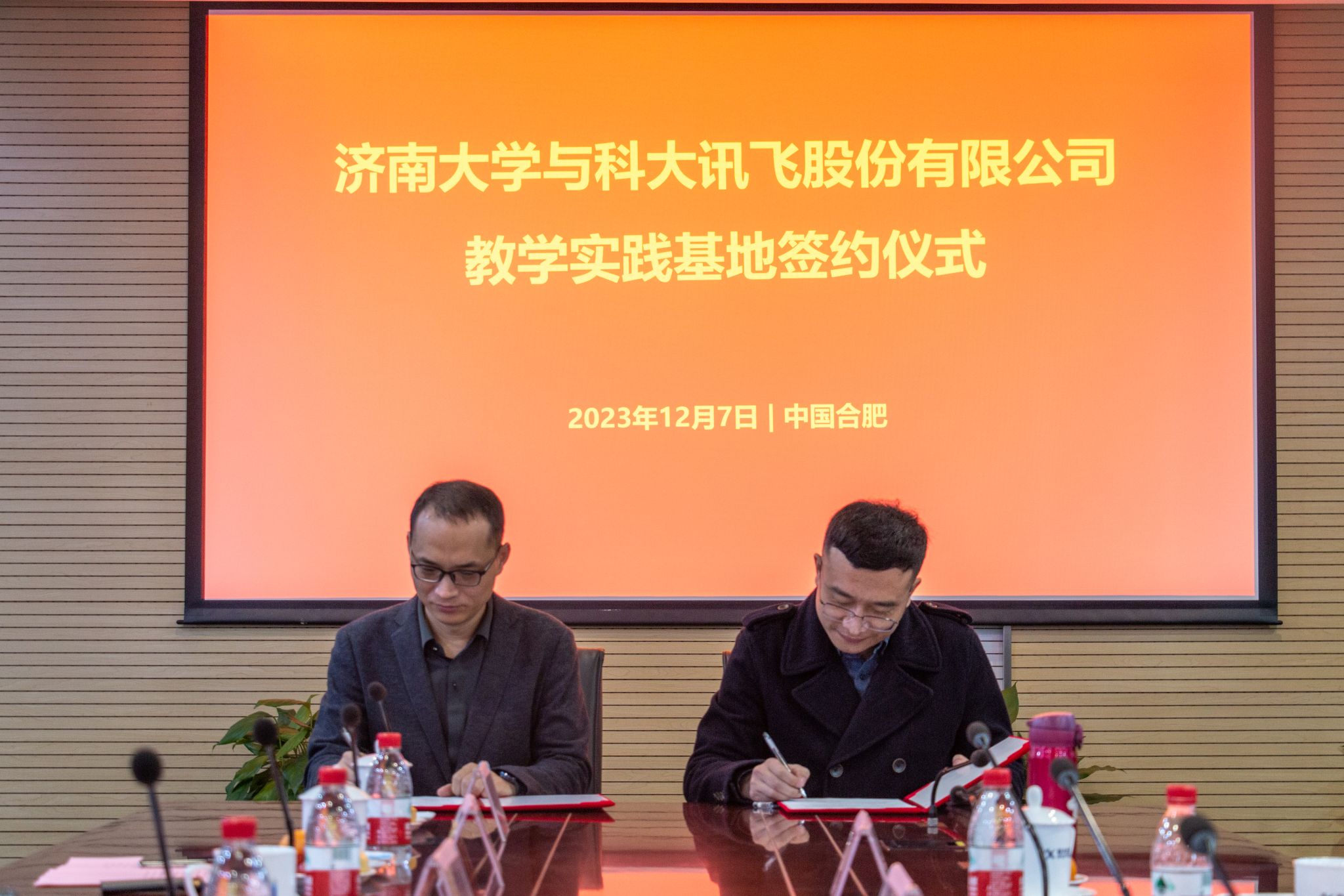 签约仪式上,万象城娱乐awc线路党委学生工作部(处)部(处)长卢旺代表学校与科大讯飞高教业务线山东区域总监李伯威签订《毕业生就业实习基地协议》,李强和陈红斌共同为“万象城娱乐awc线路就业实习基地”揭牌。万象城娱乐awc线路副院长荆山与科大讯飞股份有限公司大客户经理姬书峰签订《本科实践教学基地建设协议》,万象城娱乐awc线路教务处处长、教学质量与评估办公室主任、招生办公室主任,万象城娱乐awc线路院长陈贞翔和李伯威共同为“万象城娱乐awc线路教学实践基地”揭牌。