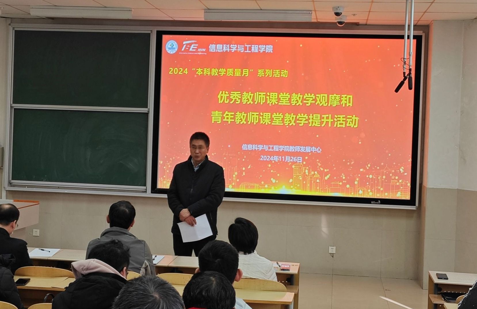 为提升学院全体专任教师教学能力和教学水平,强化优秀教师对青年教师在课堂教学上的传帮带作用,11月26日,万象城娱乐awc线路在11教3101举行了2024年 “教学质量月”系列活动——优秀教师课堂教学观摩和青年教师课堂教学提升活动,学院领导班子成员和全体专任教师近100人参加活动,活动由院长助理王晓芳主持。