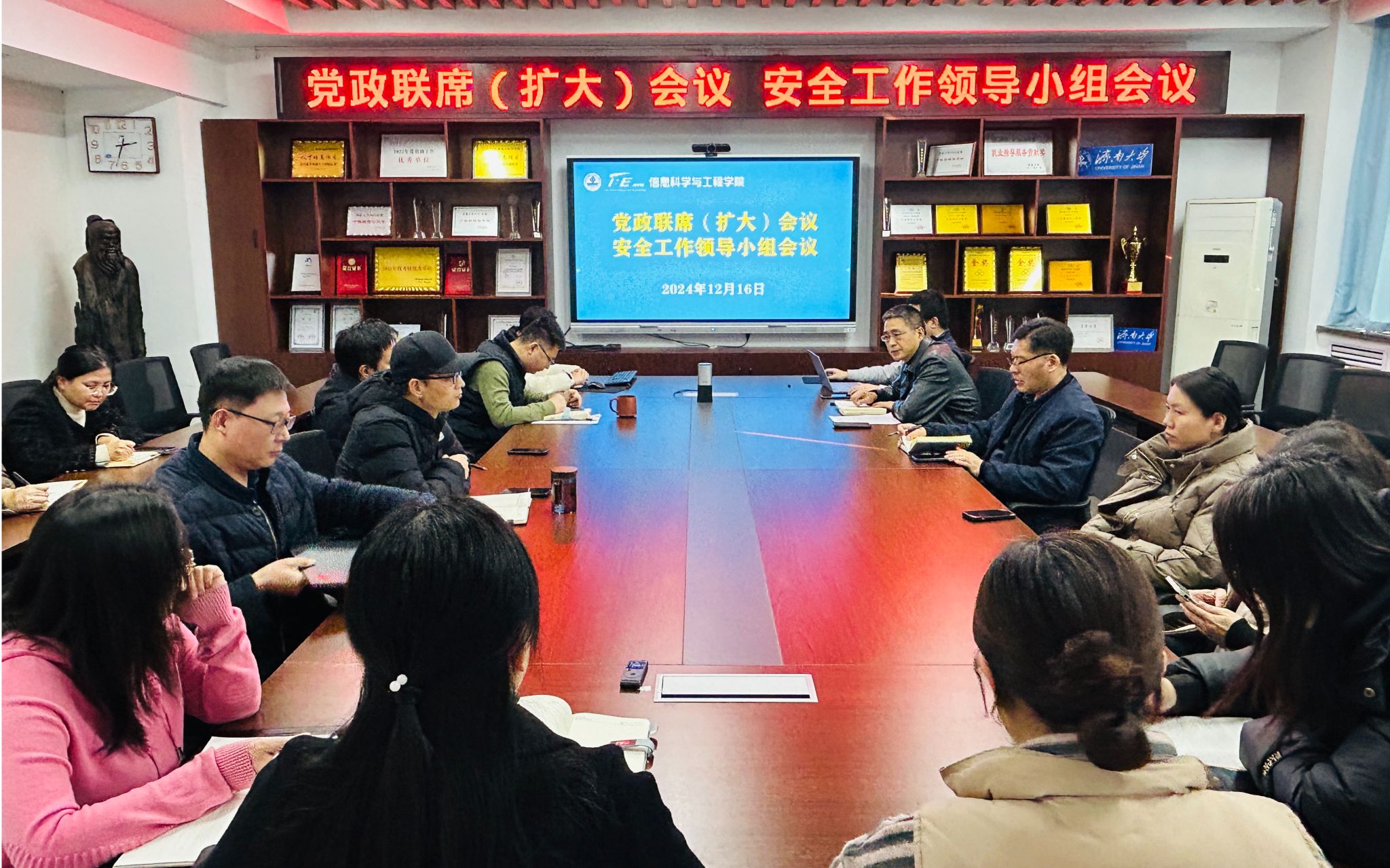为进一步加强学院安全稳定工作,筑牢安全防线,提升师生安全意识,确保学院工作平稳有序,12月16日,万象城娱乐awc线路召开党政联席(扩大)会议暨安全工作领导小组会议,部署安全稳定工作。学院领导班子成员、各系主任、科研平台负责人、科级干部、各实验室、机房负责人以及全体学工人员参加会议。