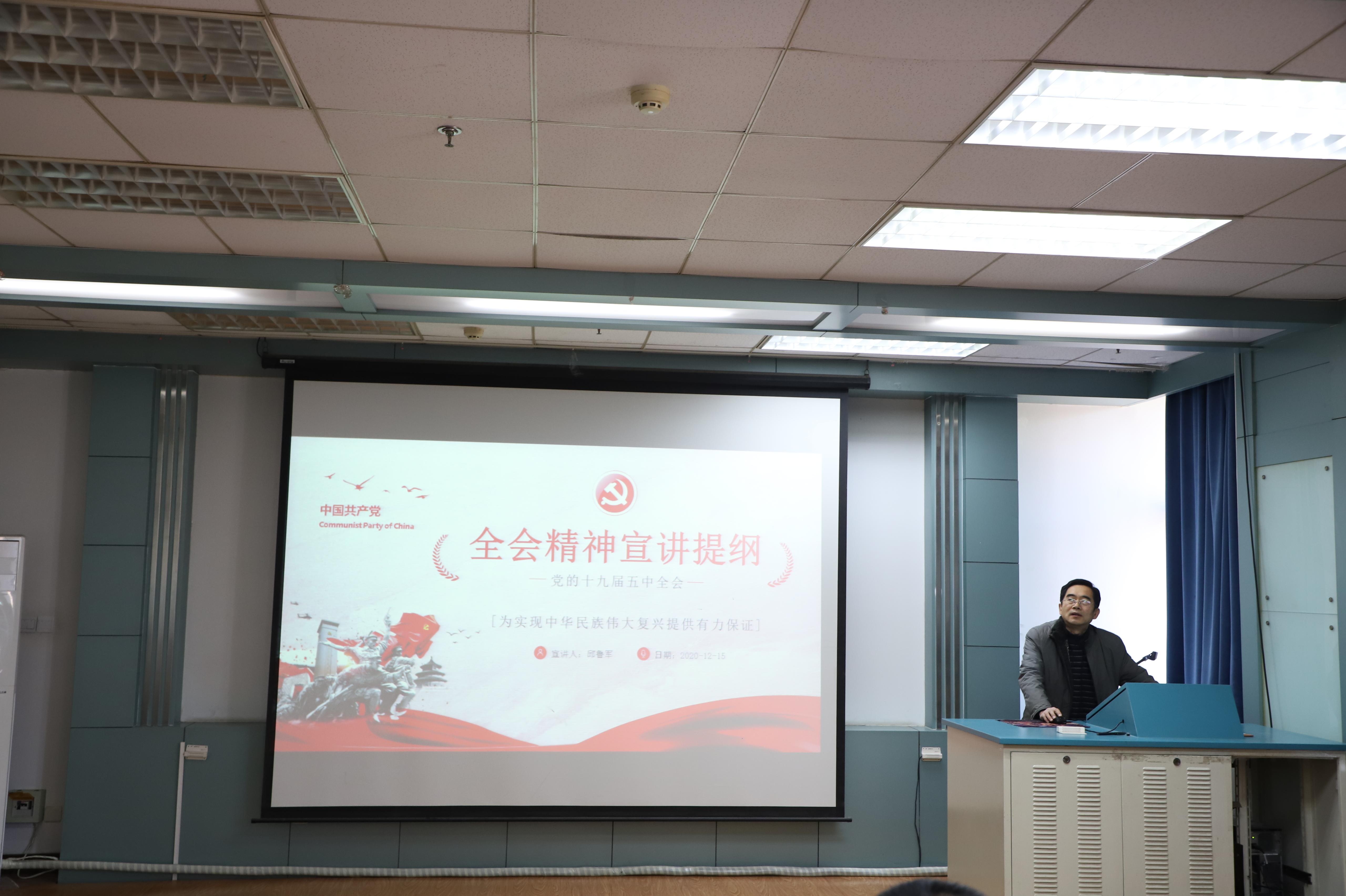 12月15日下午,万象城娱乐awc线路在12教703教室举行学习贯彻党的十九届五中全会宣讲会,学院党委书记邱鲁军作专题报告,学院各党支部书记、支部委员以及学生代表参加宣讲会。
