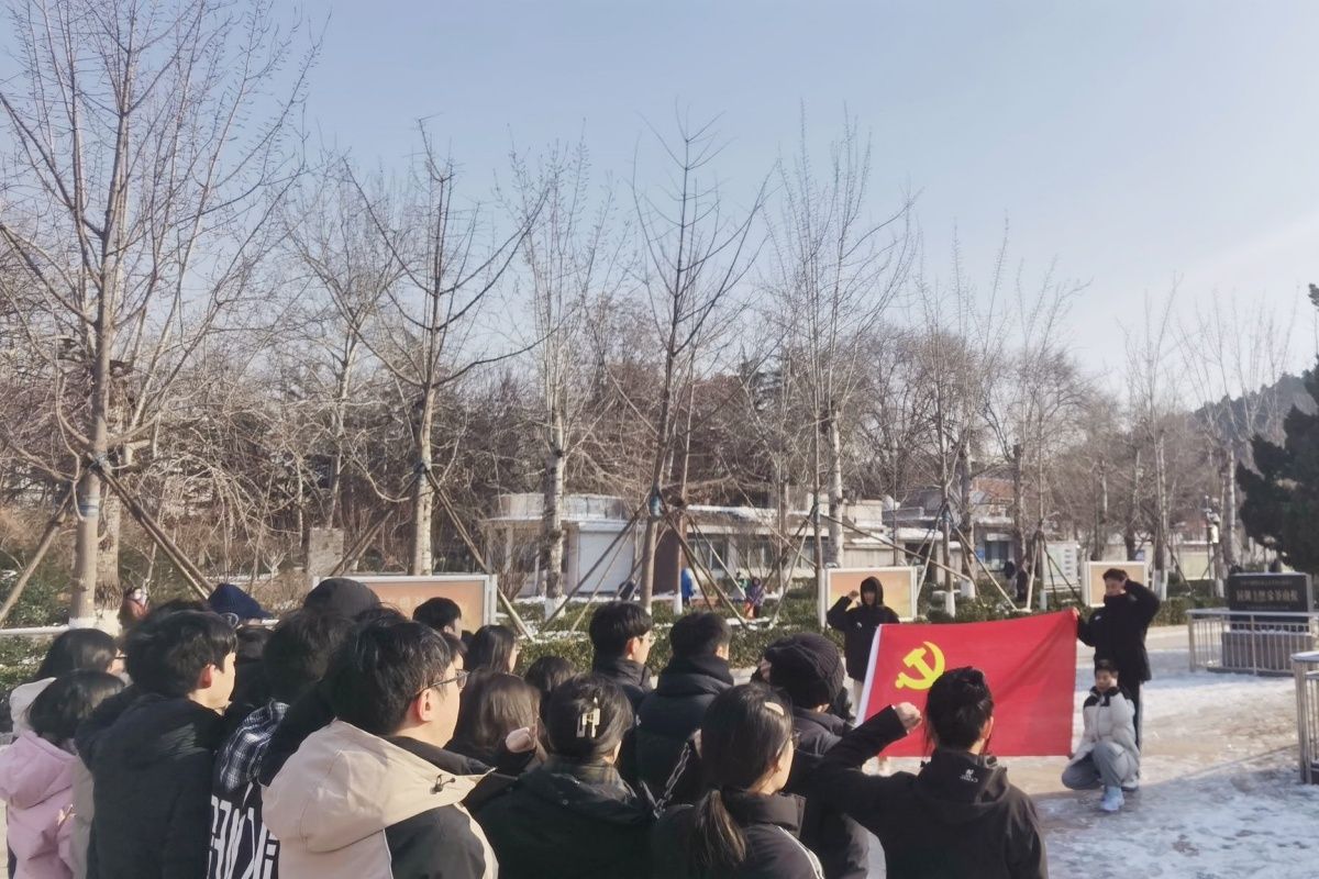 活动现场,党员们在英雄纪念碑前整齐列队,胸前佩戴着鲜红的党徽,举起右手庄严肃立,用铮铮誓词宣示了马克思主义信仰、共产主义信念以及对党和人民的忠诚,赓续中国共产党人的精神血脉。青年兴则国兴,青年强则国强,铿锵有力的誓言,昭示着新一代青年“请党放心,强国有我”的坚定信念。宣誓结束后,全体新发展党员共同参观了英雄山革命纪念馆缅怀革命先烈,接受党性锻炼。馆内的珍贵文物仿佛一本厚重的历史书卷,记录着革命先辈为祖国事业做出的卓越贡献,也让大家领略了当年的烽火岁月与英雄们的光辉事迹。活动最后,全体党员共同返回英雄山下合影留念。