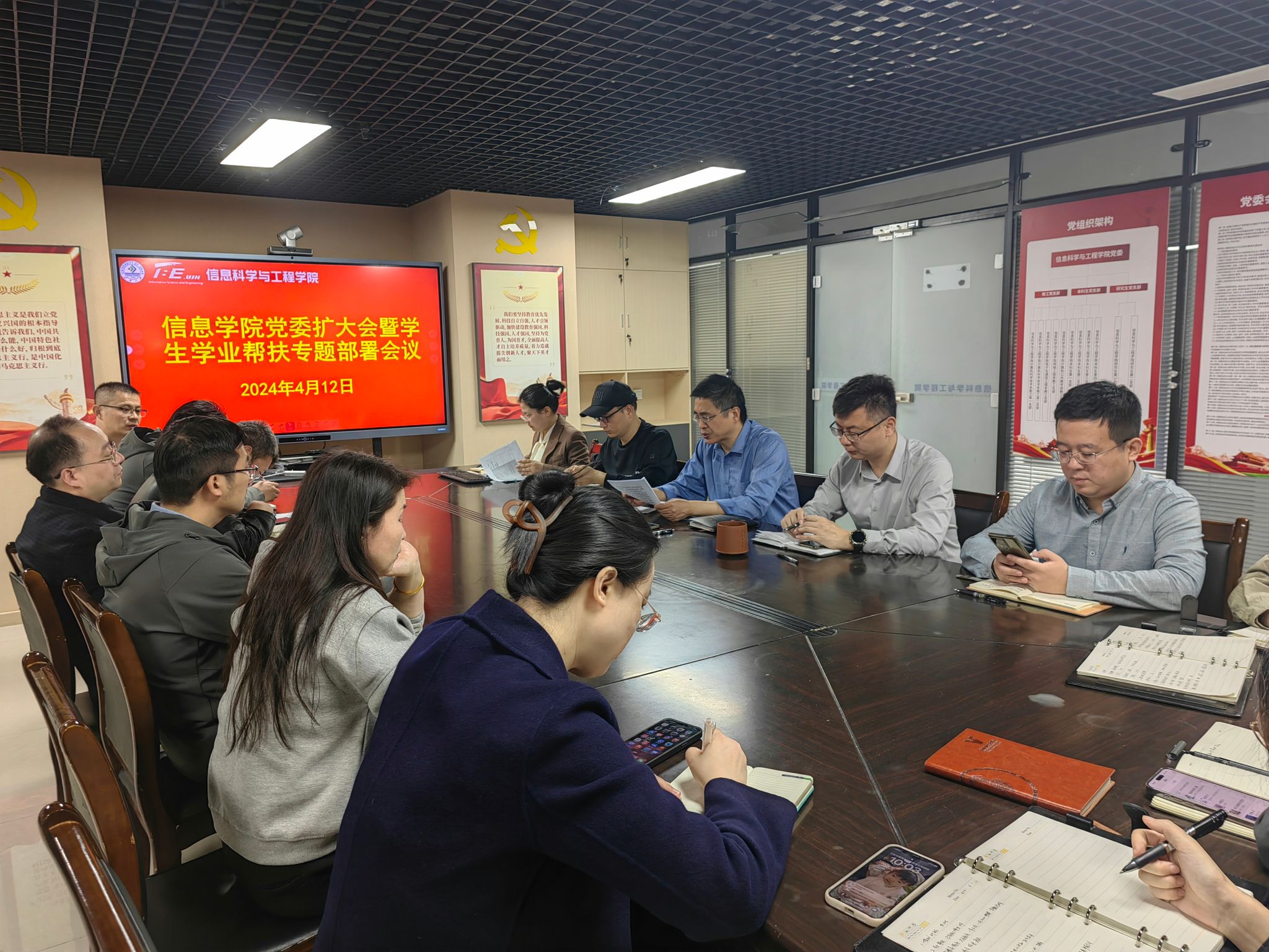 为加强学风建设,做好学生学业帮扶工作,切实提高教育教学和人才培养质量,万象城娱乐awc线路于4月12日召开党委扩大会议暨学生学业帮扶专题部署会。党委班子成员、系主任、教工党支部书记、教学管理办公室主任以及全体学生工作人员、班主任代表出席会议。