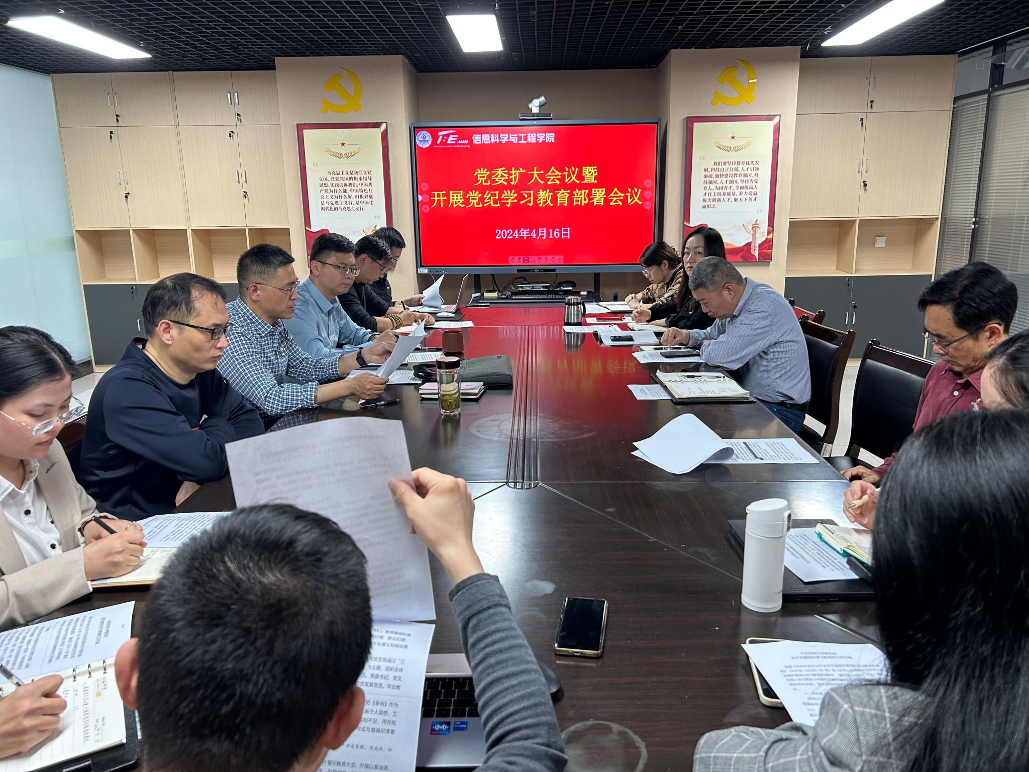 4月16日下午,万象城娱乐awc线路召开党委(扩大)会议暨开展党纪学习教育部署会议,学院党委委员、各党支部书记、组织员参加会议。