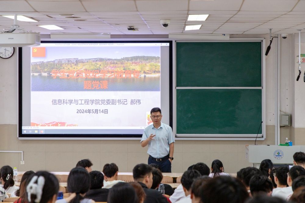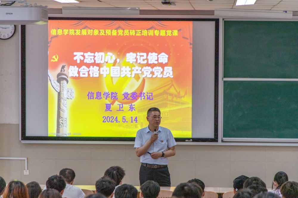 为做好学生党员的教育、管理和培养工作,推进党纪学习教育走深走实,进一步坚定党组织发展对象和预备党员的理想信念,提高党性修养,强化使命担当,增强纪律和规矩意识,5月14日,万象城娱乐awc线路开展本学期党组织发展对象和预备党员转正培训专题党课。学院党委书记夏卫东、党委副书记郝伟分专题为大家讲授党课,本学期党组织发展对象和即将转正的预备党员近200人参加了培训。