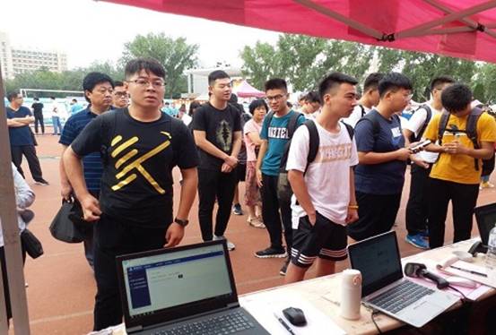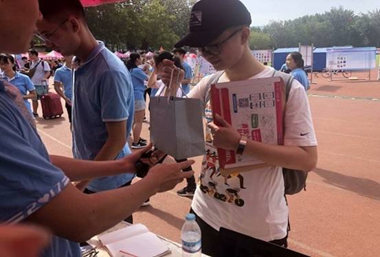 6日清晨,在操场的东北角,两个可爱灵活的机器人吸引了萌新们的注意,它们伴随音乐起舞,欢迎新生的到来,这里就是信息学院工作区。一群承载着个人梦想和父辈期望的新生朝气蓬勃地前往工作区报到,在学生会工作人员的帮助下登记并领取入学物品。在场的老师组织工作人员有序地整理归纳学生物品,为新生答疑解惑。微信墙上实时滚动新生入学现场的照片,宣传组为新生讲解展板上优秀校友的事迹,他们的成功历程将成为同学们未来四年奋斗的榜样。家长们紧跟他们身后,望着即将步入大学的孩子,纷纷露出欣慰的笑容,不少家长还拿出手机,为孩子记录下这历史性一刻。9月6号也是两位新生的生日,在这个意义重大的日子里,信息学院为他们准备了精美的礼物,收到生日礼物后,他们脸上洋溢着惊喜的笑容。报到结束后志愿者带领同学们来到宿舍,在管理服务中心的协助下领取被褥,准备迎接新生活。