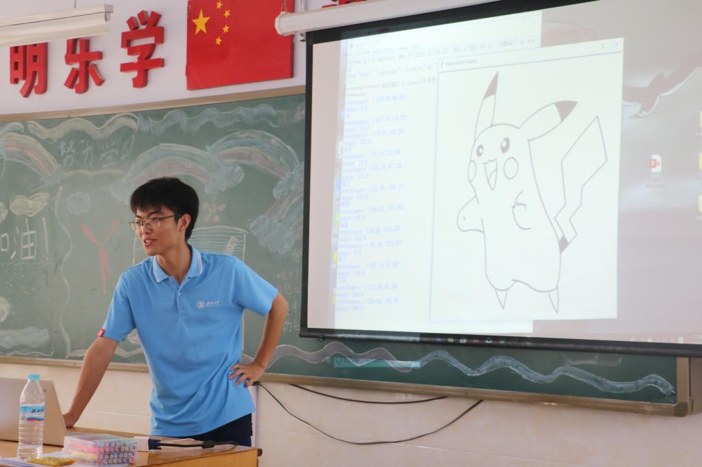兴趣是孩子最好的老师,为培养小朋友们对计算机技术的兴趣,引领他们逐步探索信息世界,开发小朋友们对计算机的热情。7月16日,万象城娱乐awc线路“青春视角,美丽中国”日照五莲暑期社会实践团的志愿者结合计算机专业特色,给小朋友们精心准备了一堂别开生面的计算机编程启蒙课。并在下午太阳落山后,在操场上与孩子们进行了篮球课的初步教学。