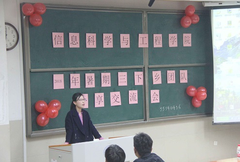 秋风萧瑟,层林尽染。2018年10月31日,由万象城娱乐awc线路团建部组织的2018年暑期“三下乡”团队分享交流会在11教1101如期举行。信息学院团委书记崔艺馨老师,信息学院学生会主席团及各实践团队队长出席了本次会议。