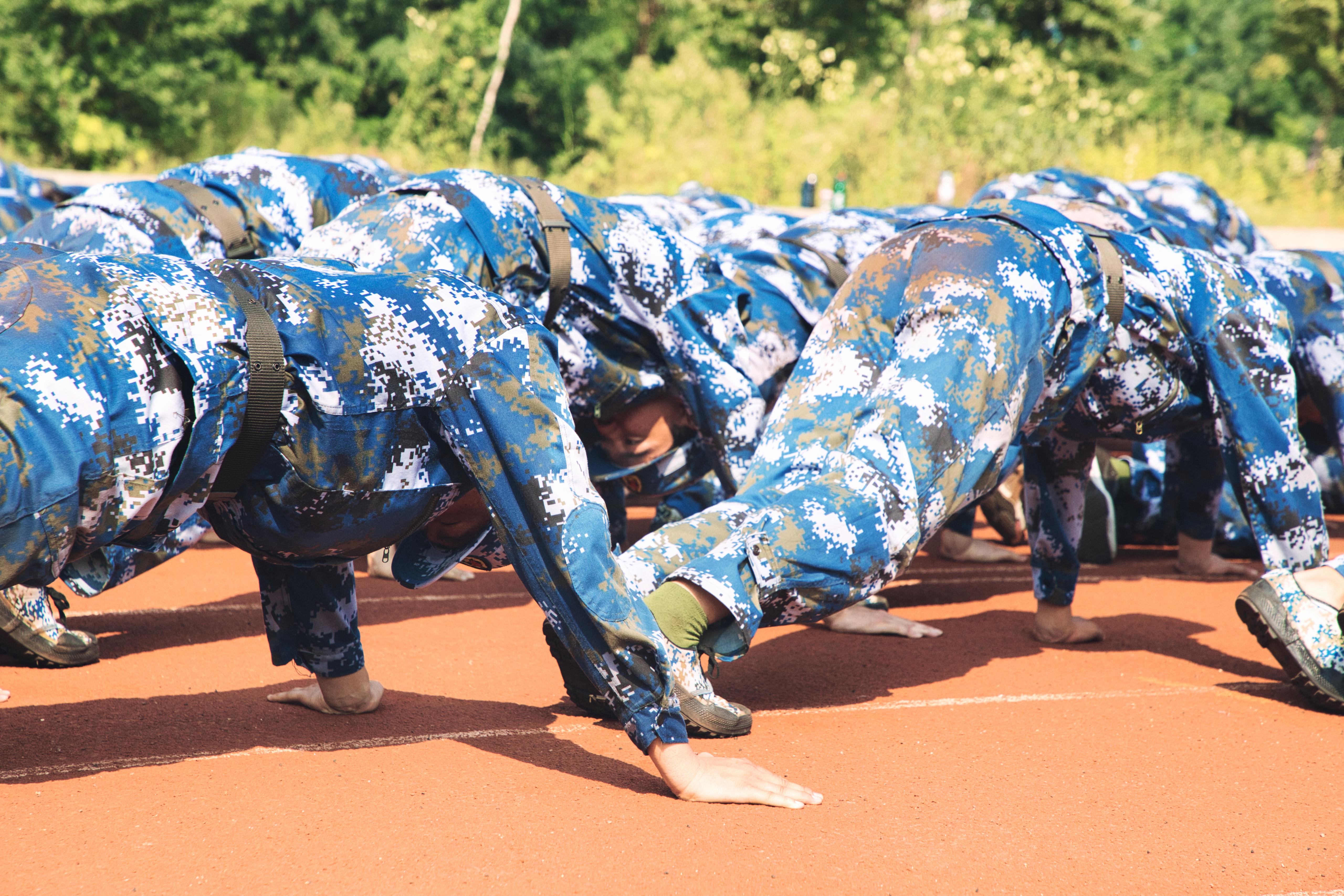 “军训是大学生入学必将经历的过程,除了学术上的思考和积累,坚定的心智和耐力也是一位合格的大学生所必须拥有的。”每一次坚持,每一次调整,都是同学们对自己的挑战,坚毅的脸庞,顽强的身姿,笔挺的军装,在红色的跑道上,组成了一幅和谐而完美的画面。欲与烈日试比强,太阳晒黑了我们的皮肤,却铸就了我们的坚强。
