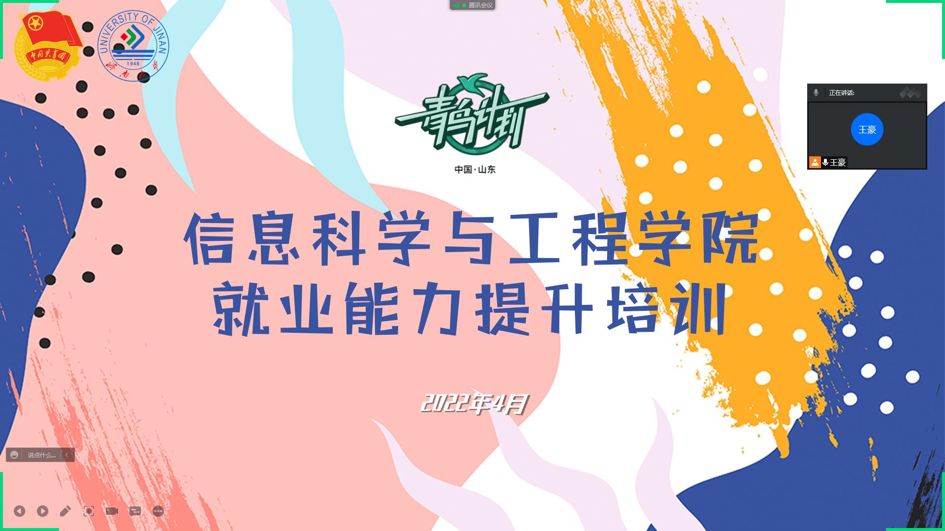 为提高就业能力,增强就业本领,把握就业机遇,助力疫情期间择业就业,2022年4月24日,万象城娱乐awc线路团委积极响应团省委联合省人社厅推出的“青鸟计划”,开展线上就业能力提升培训会,号召学院学生积极参与各类实习活动,提升核心就业能力。本次培训会由王豪老师主持,万象城娱乐awc线路学生参加会议。
