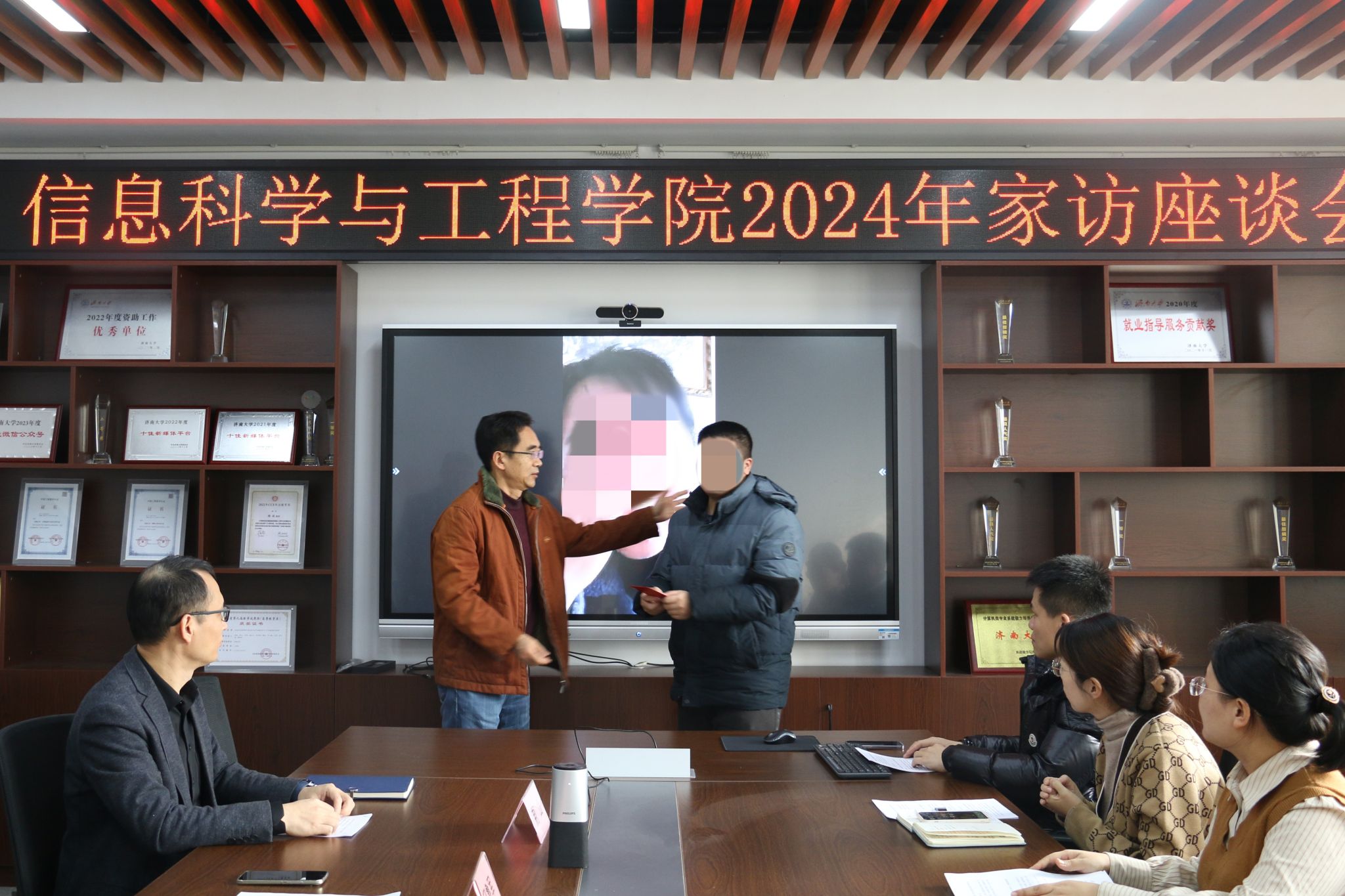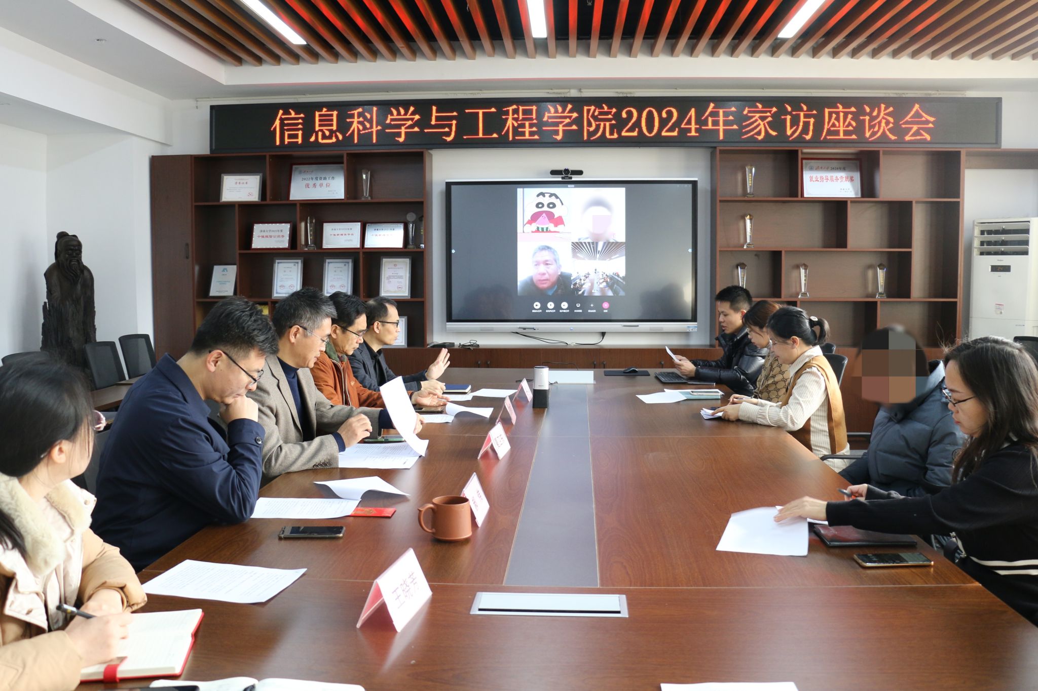 为深入学习贯彻党的二十大精神,围绕立德树人根本任务,扎实做好寒假家访工作,持续深化学院老师家访的育人实效,形成和谐、高效的家校育人环境,切实发挥家校育人合力,1月14日上午,万象城娱乐awc线路在12教704召开了2024年寒假家访座谈会,通过腾讯会议、视频电话等方式与多名省外重点资助学生及家长进行线上交流,“一对一、面对面、心连心”,为受助学生家庭送去温暖和祝福,让爱充满“云端”。学院党政领导班子成员、全体学工人员、班主任代表以及部分学生及家长代表参与此次会议,会议由学院党委副书记、副院长郝伟主持。