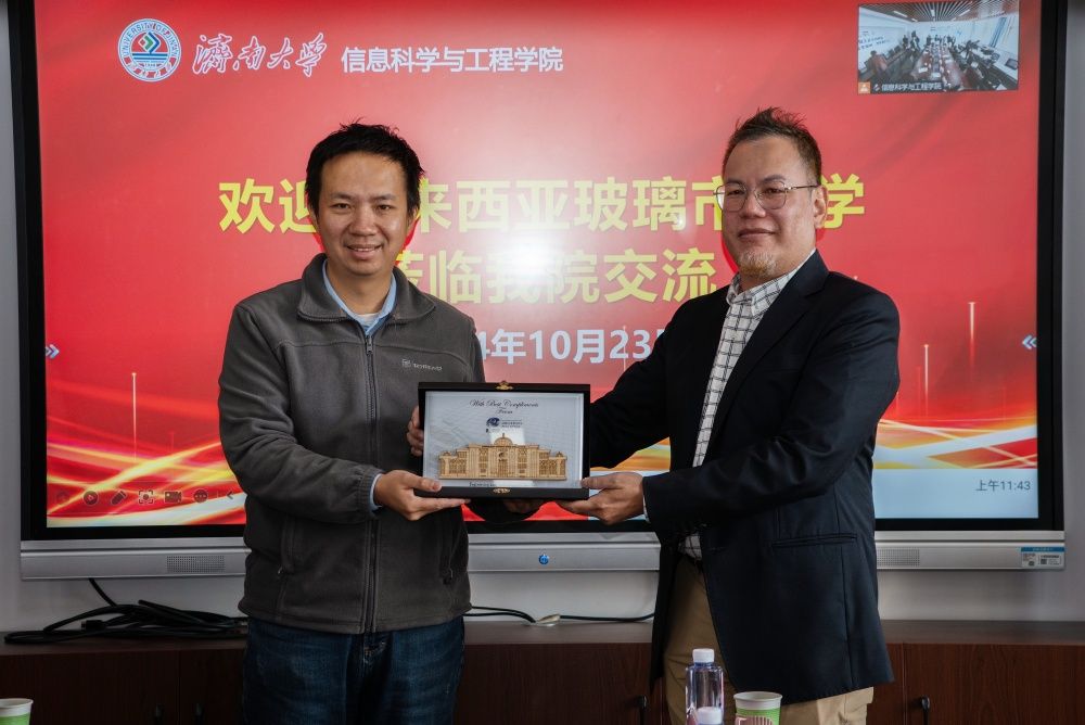 随后,双方围绕中外合作办学、互派交换生、留学生招生、科学研究等方面进行了深入交流探讨。双方表示,将充分利用各自在人工智能、信息技术等领域的优势资源,建立深度合作关系,促进双方共同发展。会后,双方合影留念并交换礼物。