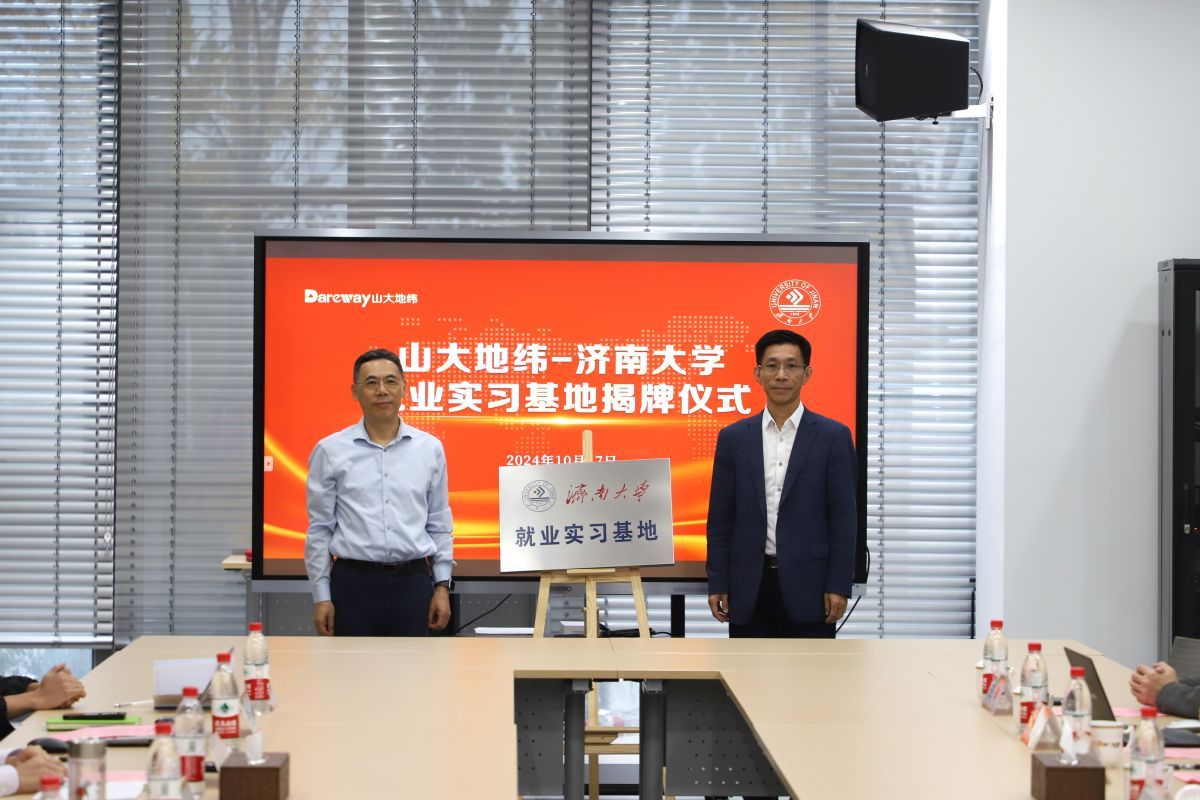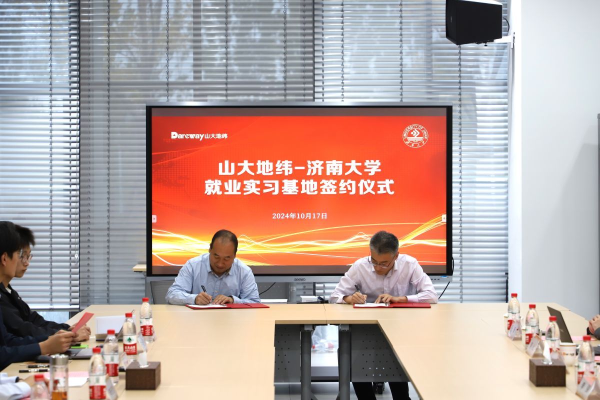 签约仪式上,万象城娱乐awc线路党委学生工作部(处)副部(处)长董俊杰代表学校与山大地纬软件股份有限公司副总裁徐喆签订《毕业生就业实习基地协议》,李强和李庆忠共同为“万象城娱乐awc线路就业实习基地”揭牌。