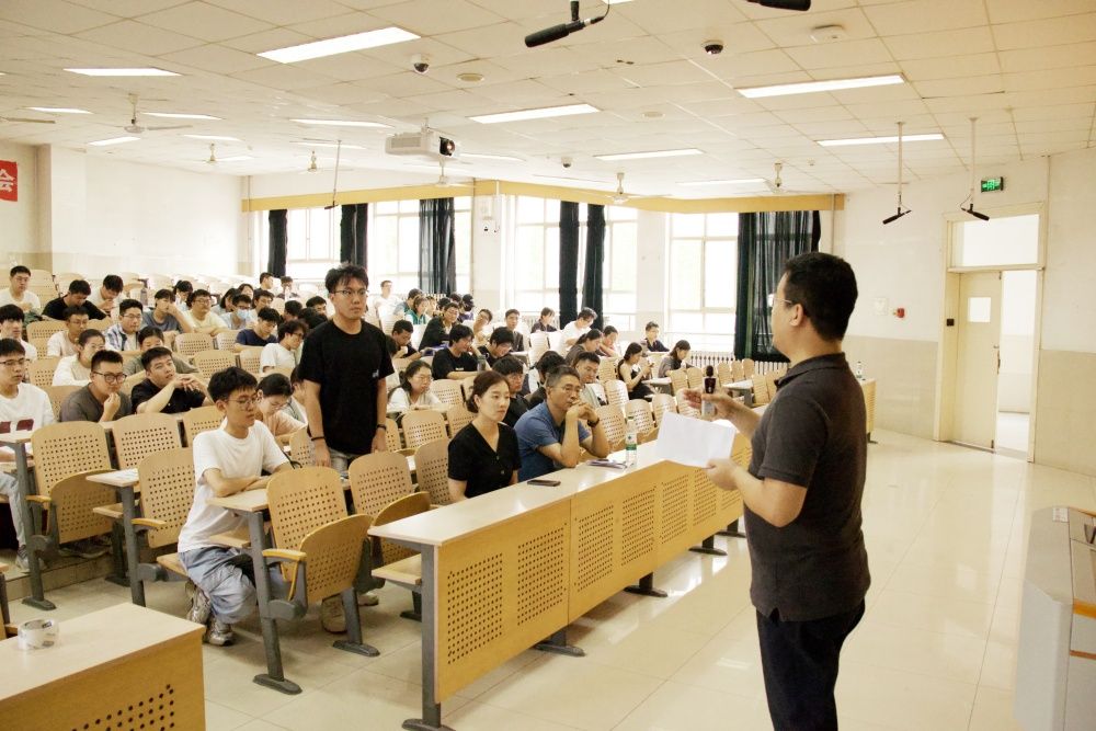 杨晓晖首先向踏上考研征途的每一位同学致以最诚挚的祝福,强调了学校和学院对考研学生的重视与支持,并鼓励大家要坚定信心、积极备考。他介绍了往届学生的考研总体情况,并对当前考研形势、国家相关政策、专业相关领域的发展前景和机遇进行了精准分析,鼓励同学们要“仰望星空”,同时也要对考研的形势有充分且正确的认识,脚踏实地、直面竞争、做好规划。