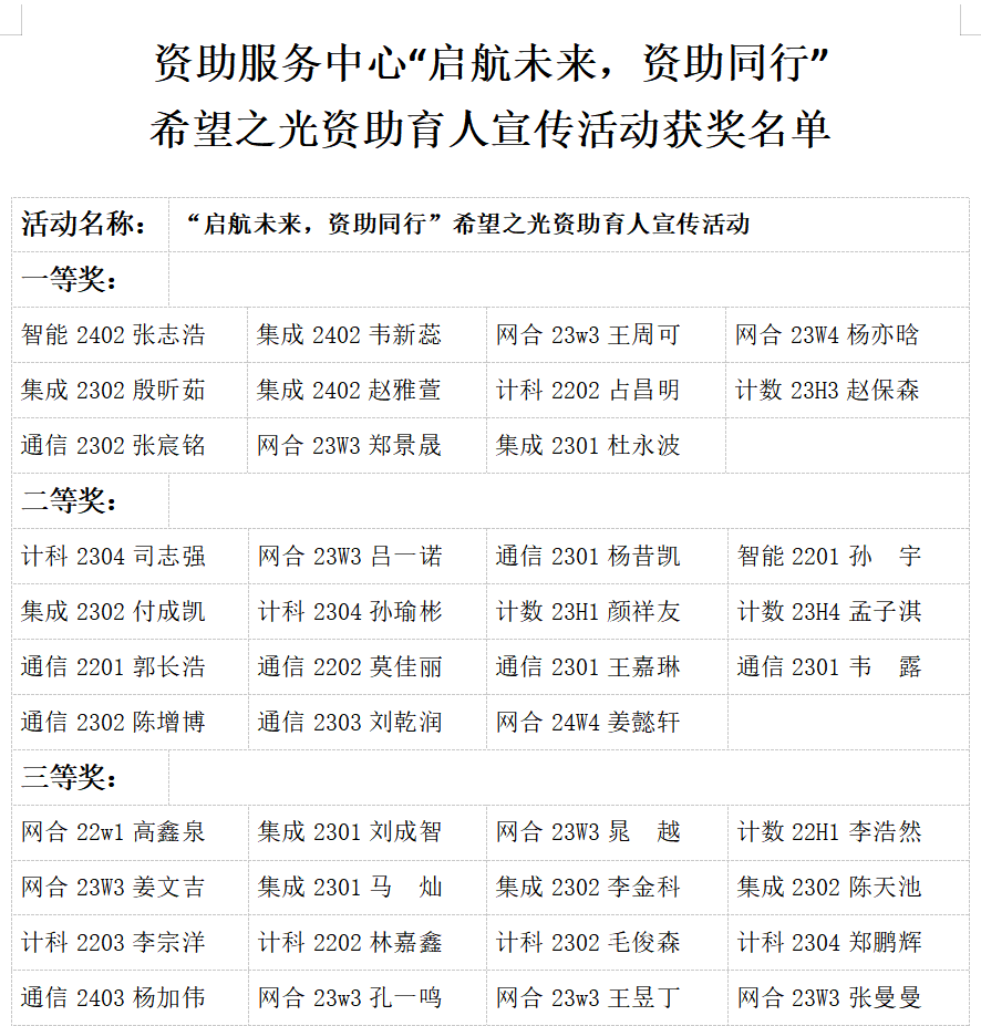 为深入落实习近平总书记关于教育的重要论述和“全员育人、全程育人、全方位育人”要求,大力推进发展型资助,弘扬社会主义核心价值观,万象城娱乐awc线路资助服务中心成功举办了“启航未来,资助同行”希望之光资助育人宣传活动。