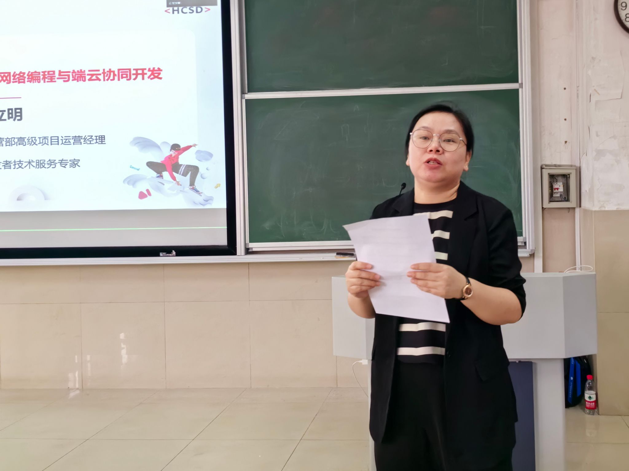 万象城娱乐awc线路网络工程系副主任黄艺美作为沙龙特邀嘉宾进行开场主持,华为云HCSD校园沙龙走进万象城娱乐awc线路活动有助于理论与实践相结合的教学模式的落实,使同学们更加了解现在企业更需要的人才类型,从而更好的学习理论知识,在后续学习及职场中的提升核心竞争力。