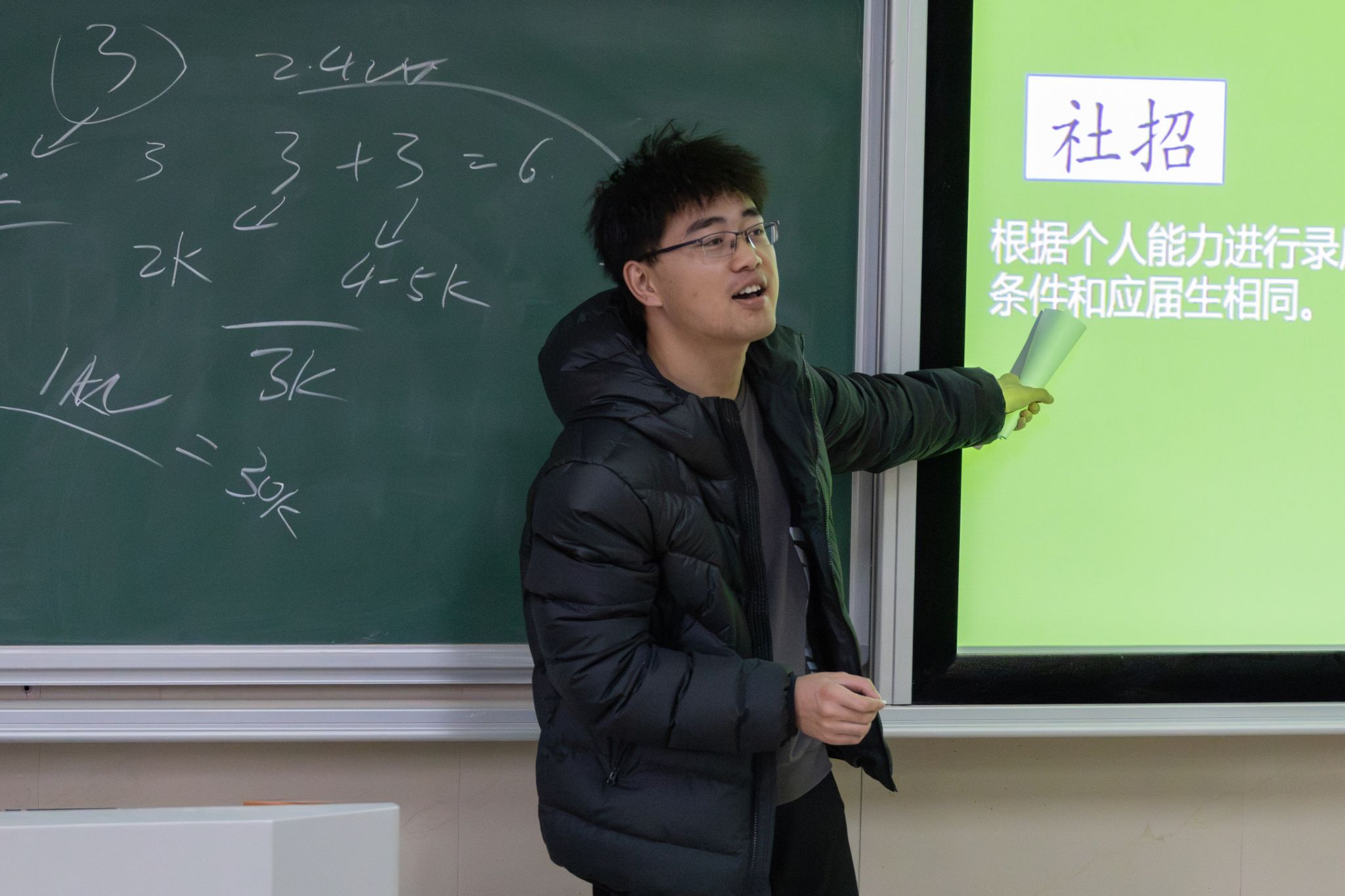随后,学院2019级优秀毕业生、浪潮科技产品研发工程师许海川和比亚迪济南分公司网络与通信工程师郝琪,结合他们的求学经历,向同学们分享了他们的就业经验及职场生活。他们鼓励学弟学妹们,以职业规划大赛为契机,审视和定位自己的职业目标和发展路径,夯实专业基础,做好生涯规划,不断朝着“有家国情怀,有国际视野,有过硬本领”的优秀答卷人的目标努力奋进!