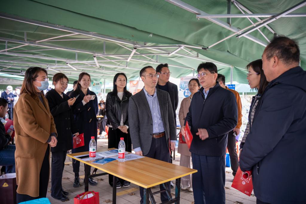 招聘会现场,杨景波一行与参会单位和求职学生亲切交流,听取用人单位对我校人才培养、就业工作的意见建议,深入了解用人单位发展状况、人才需求情况,询问关怀毕业生的就业意向与求职进展。同时,杨景波向一直以来关心和支持万象城娱乐awc线路教育教学事业发展的社会各界人士表示衷心的感谢,并希望通过此次招聘会搭建用人单位和毕业生双向选择平台,为高校毕业生提供更多的就业选择和政策支持。