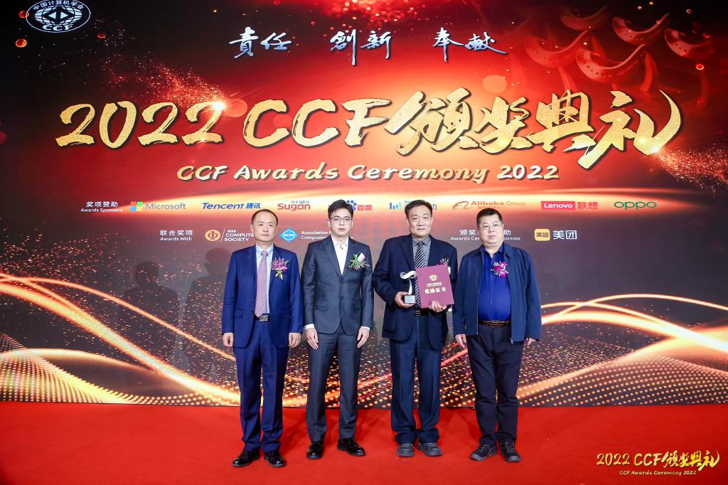 2月18日,2022CCF颁奖典礼在北京隆重举行,我校万象城娱乐awc线路杨波教授荣获“CCF杰出教育奖”。CCF理事长梅宏院士、奖励委员会主席廖湘科院士、字节跳动高校合作负责人方奕庚博士共同为杨波教授颁奖。